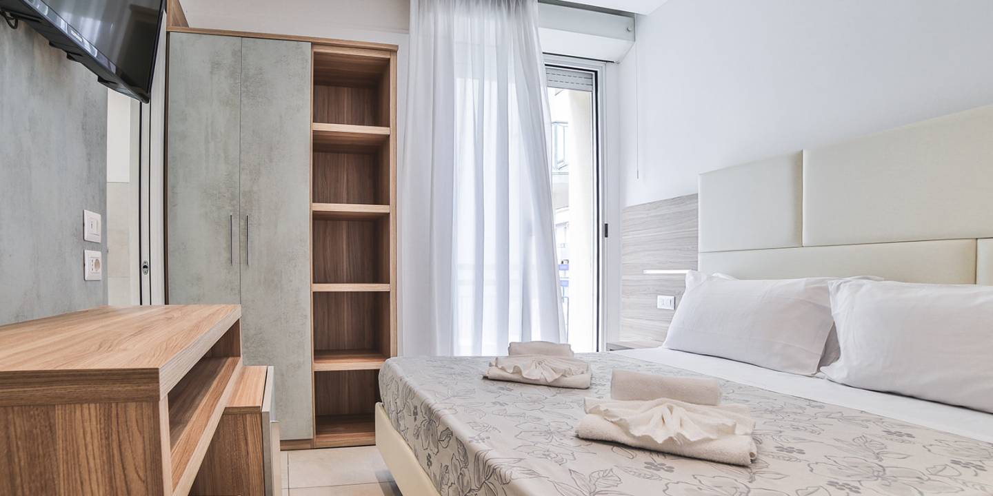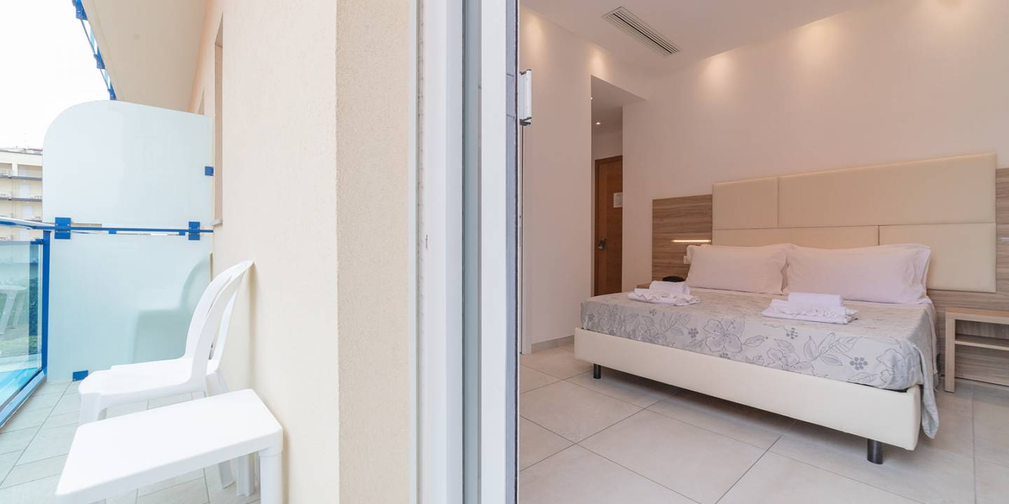 Confortevoli, luminose, arredate con buon gusto, ideali per coppie che ricercano una sobria eleganza, le Comfort sono camere matrimoniali con balcone, dal quale è possibile godere della vista del mare.