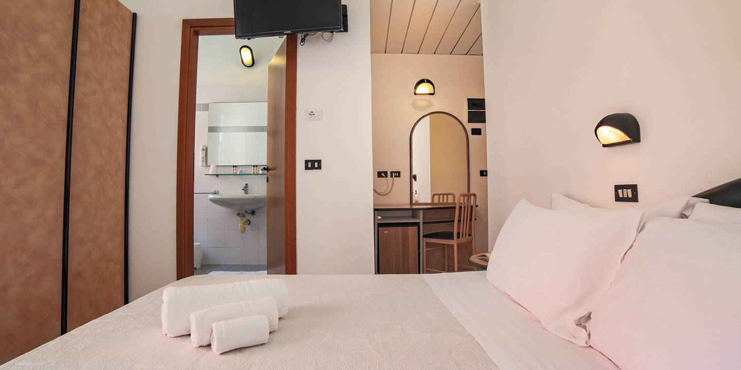Le Camere Executive dell’Hotel Ambasciatori sono il giusto compromesso fra comodità e convenienza; camera matrimoniale con balcone non ristrutturata , con possibilità di vista del mare.